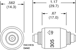 305 三路4A 点击放大 公司名称: 无锡市同康机电有限公司 产品型号: 产品简介: 详细说明 Mercotac 305 三极, 4安培 并有不锈钢轴承选择(305-ss) 型号 极数 电压范围 AC/DC 最大电流 @240VAC 最高频率 MHZ 接触电阻 最高转速 工作温度 Max. F(C)/ F(C) 旋转扭距 (x10-3Nm) 极间电阻 305 3 0-250 4 200 <1mΩ 1800 140(60)/45(7) 100 >25MΩ 205ss 3 0-250 4 200 <1mΩ 1000 140(60)/-20(29) 100 >25MΩ 305附件 593 3根6“ 18awg 线 553 注意:附件需要单独定购