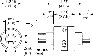 430 两路4A两路30A 点击放大 公司名称: 无锡市同康机电有限公司 产品型号: 产品简介: Mercotac 430 水银滑环 两路4A两路30A 详细说明 Mercotac 430 两极, 30安培 两极, 4安培 接头已包括 橡皮套可选用 不锈钢轴承可选择(430-ss) 型号 极数 电压范围 AC/DC 最大电流 @240VAC 最高频率 MHZ 接触电阻 最高转速 工作温度 Max. F(C)/ F(C) 旋转扭距 (x10-3Nm) 极间电阻 430 4 0-250 2@4/2@30 100 <1mΩ 1200 140(60)/-20(-29) 400 >25MΩ 430-ss 4 0-250 2@4/2@30 100 <1mΩ 1200 140(60)/-20(-29) 400 >25MΩ "SS" 表示使用不锈钢轴承 430附件 55251 接头16-14AWG (2个已包括) 57430 橡皮套 IP51 55250 16-14AWG (1个已包括) 5030-T 安装工具 (橡皮套57430) 55110 接头22-18AWG (4个已包括) 注意:附件需要单独定购