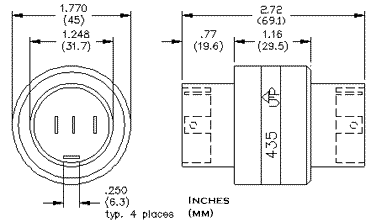 435 4路30A 500V 点击放大 公司名称: 无锡市同康机电有限公司 产品型号: 产品简介: 详细说明 Mercotac 435 四极, 30安培 接头已包括 橡皮套可选用 不锈钢轴承可选择(435-ss) 型号 极数 电压范围 AC/DC 最大电流 @240VAC 最高频率 MHZ 接触电阻 最高转速 工作温度 Max. F(C)/ F(C) 旋转扭距 (x10-3Nm) 极间电阻 435 4 0-500 30 100 <1mΩ 300 140(60)/-20(-29) 850 >50MΩ 435-SS 4 0-500 30 100 <1mΩ 300 140(60)/-20(-29) 850 >50MΩ "SS" 表示使用不锈钢轴承 435附件 55251 接头16-14AWG (2个已包括) 57435 橡皮套 IP51 55250 16-14AWG (1个已包括) 注意:附件需要单独定购
